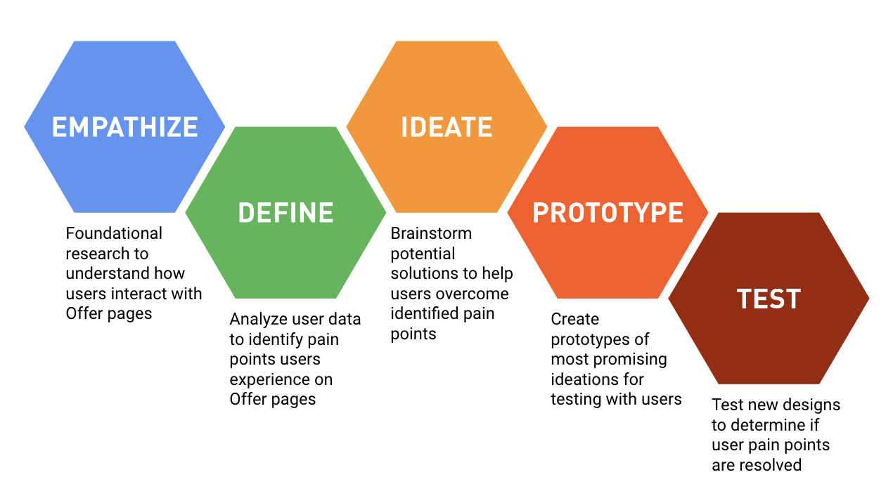 Moderated usability tests were conducted on the current designs of the offer page as foundational research. The purpose of the testing was to establish whether the outlined stakeholder goals aligned with users’ needs and expectations for these pages. Below are the 3 most important user problems that were discovered in the tests:
